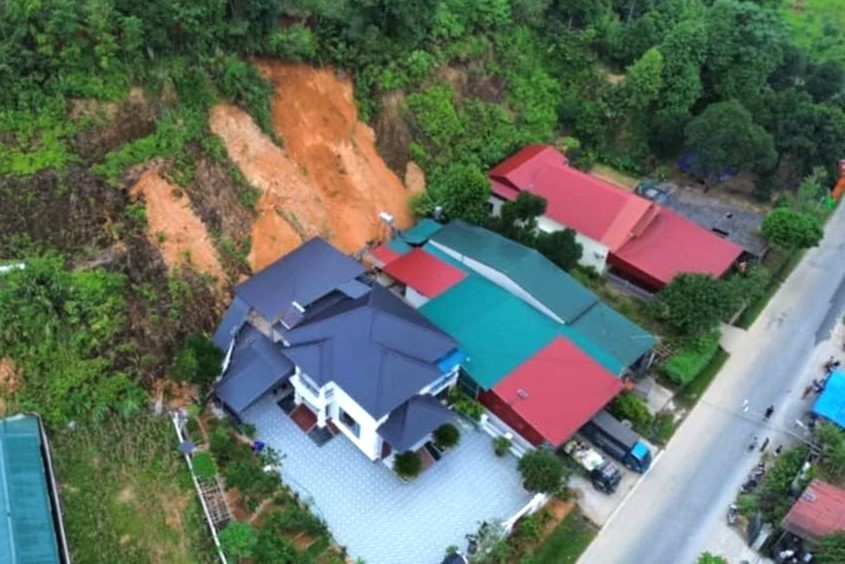 Trước đó, khoảng 5h sáng 8/10, tại thôn Khởi Xá, xã Bảo Nhai, huyện Bắc Hà, tỉnh Lào Cai xảy ra một vụ sạt lở, khiến lượng lớn đất đá trên đồi sạt xuống, ảnh hưởng tới 5 ngôi nhà trong khu vực.