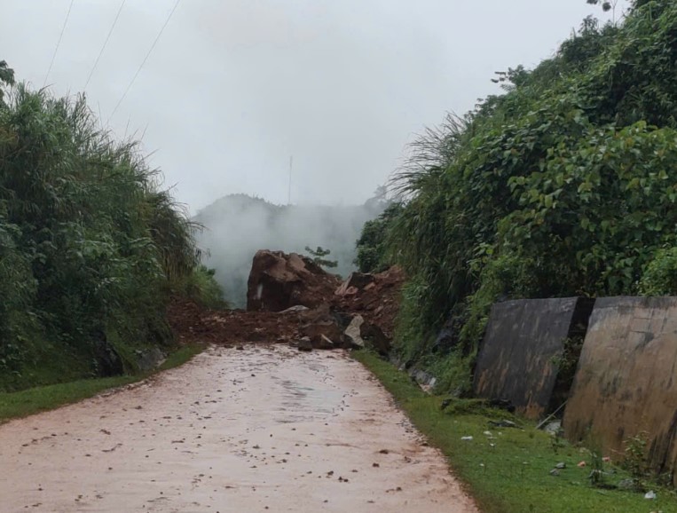 | Đường giao thông bị sạt lở tại xã Bảo Nhai |
