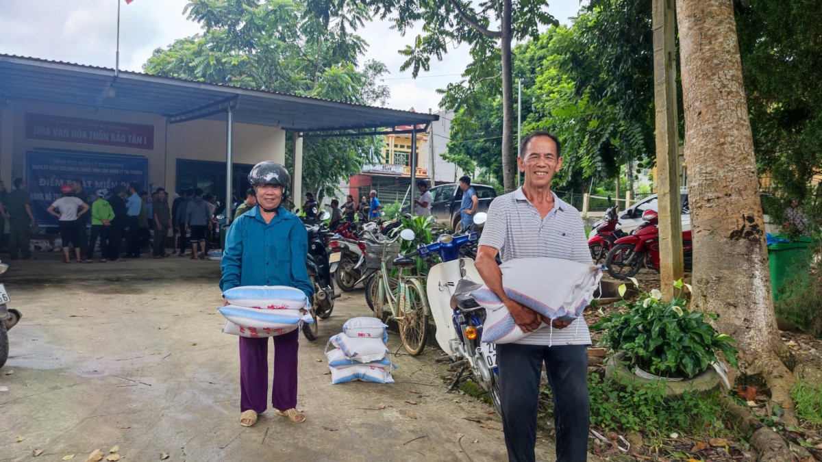 | Niềm vui của người dân khi nhận quà hỗ trợ. |