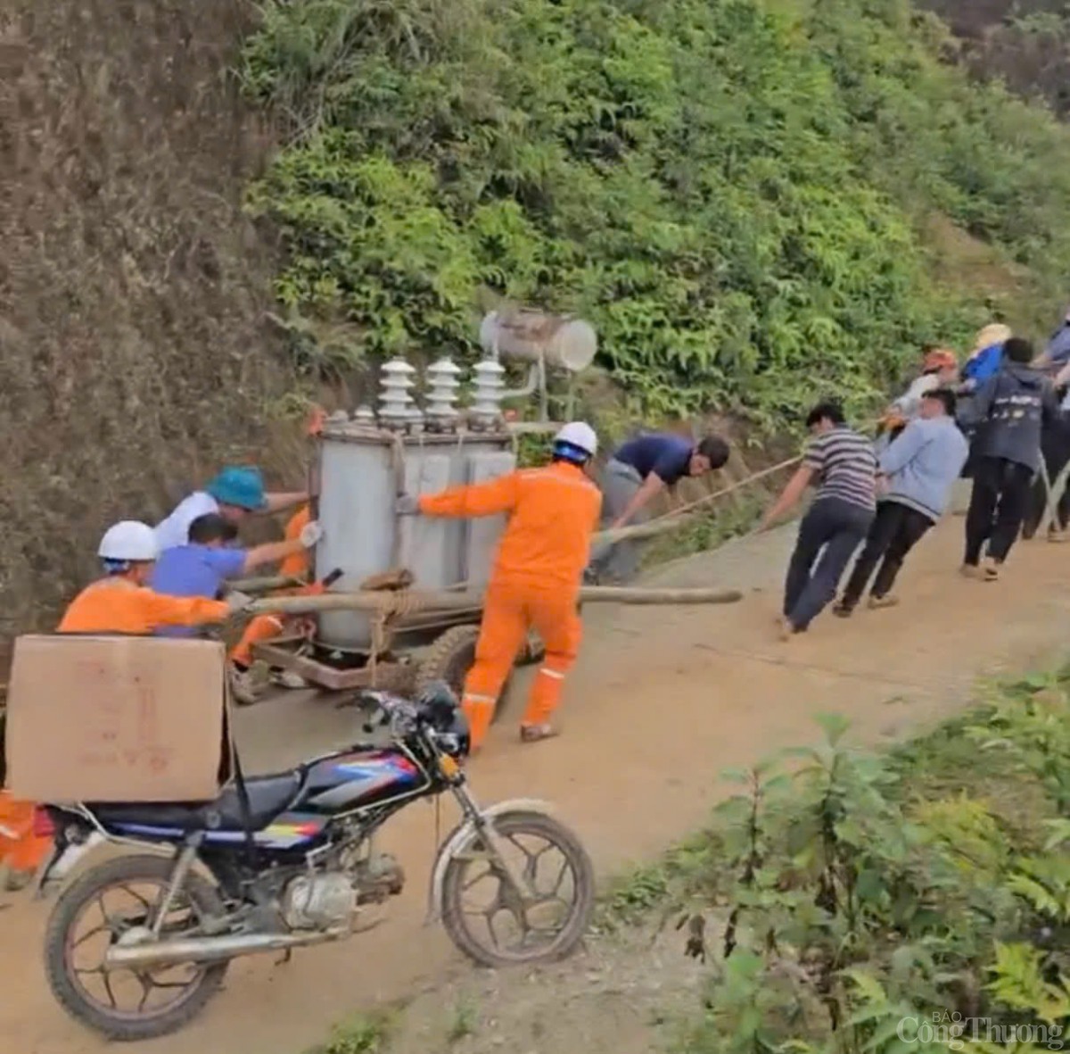 Hình ảnh những đôi chân trần bám đất, mồ hôi ướt đẫm lưng áo của người dân khiến chúng tôi không khỏi cảm động. Ánh mắt sáng ngời và nụ cười tươi tắn trên khuôn mặt khi nhìn thấy chiếc máy biến áp “khổng lồ” đã vào đúng vị trí khiến mọi mệt mỏi dường như tan biến.