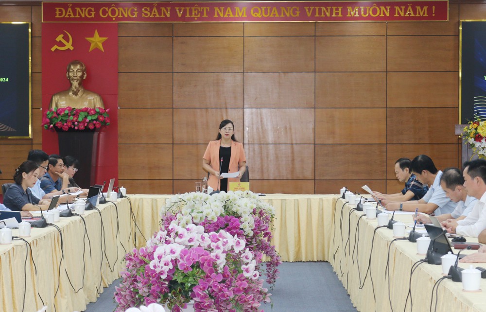 | Bà Giàng Thị Dung - Phó Chủ tịch UBND tỉnh Lào Cai chủ trì cuộc họp công tác chuẩn bị tổ chức Festival Sông Hồng năm 2024 (Ảnh: CTTĐTLC) |