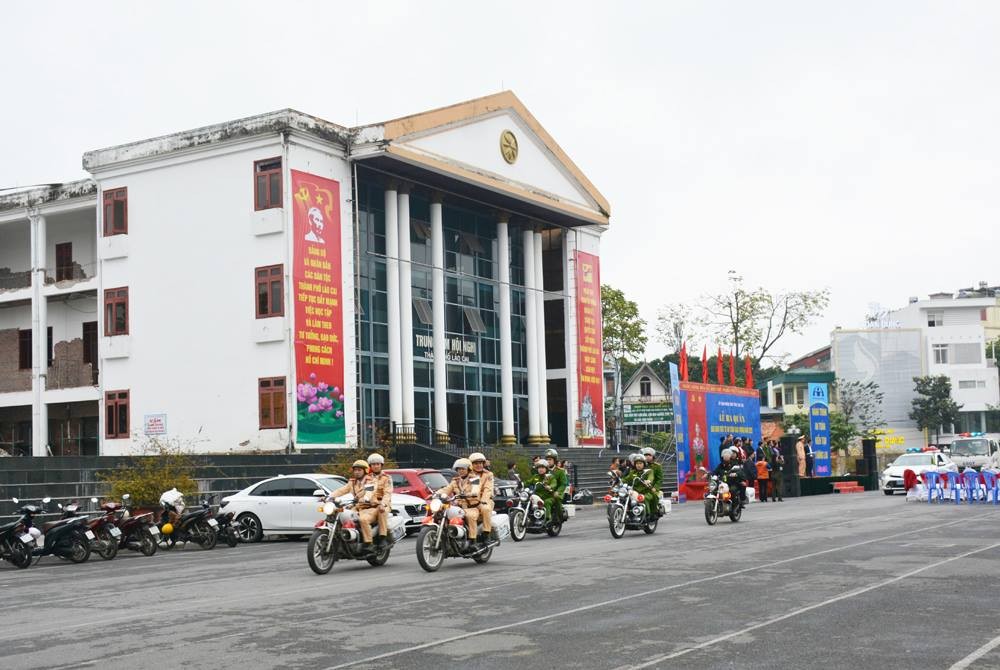 Ngay sau lễ phát động ra quân, các lực lượng tham gia đã tham gia diễu hành tuyên truyền về đảm bảo an toàn giao thông trên các tuyến phố chính của thành phố Lào Cai.