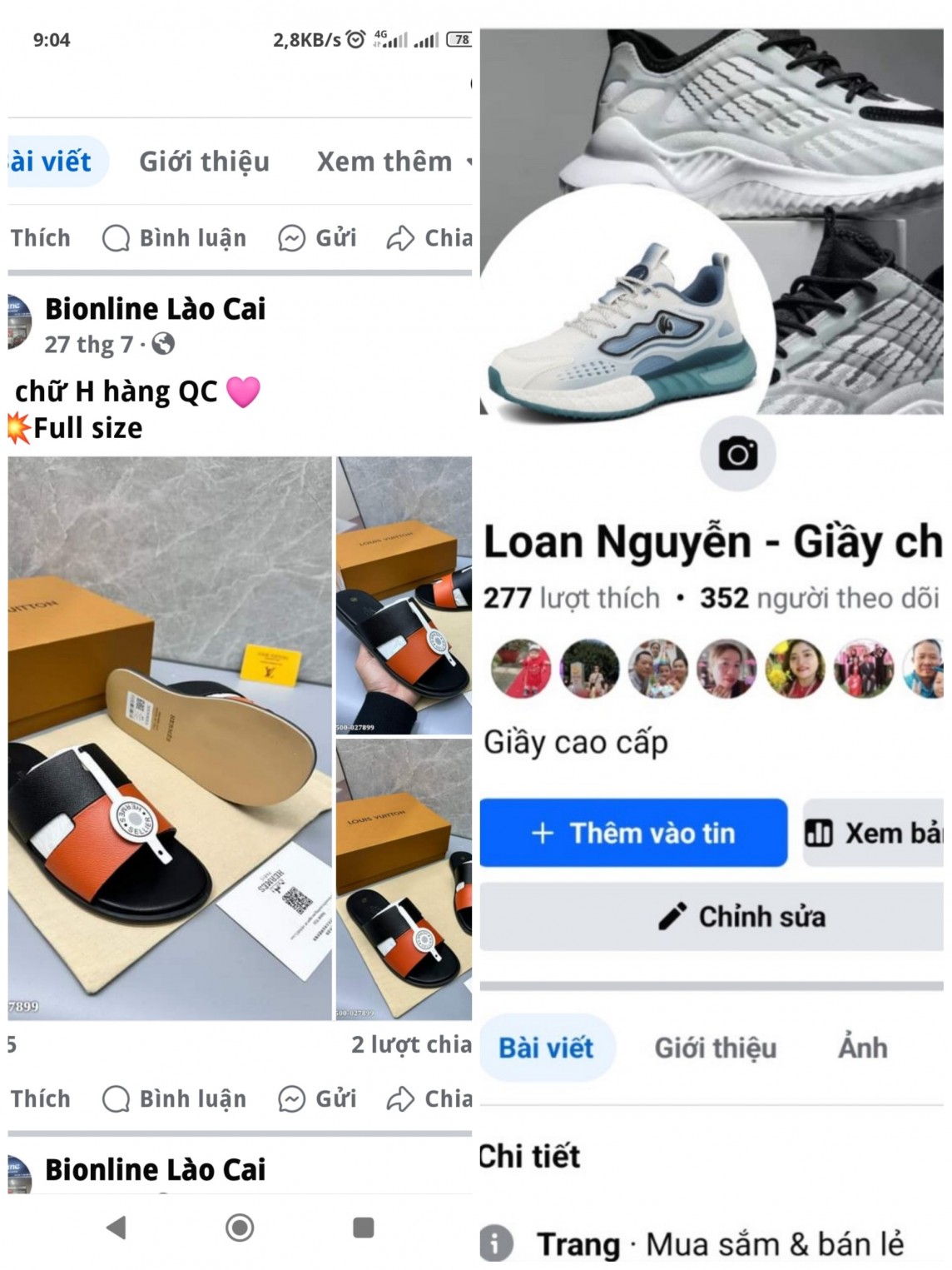 | Trang Facebook kinh doanh giày thể thao Hộ kinh doanh Nguyễn Thị Loan. (Ảnh: Cục QLTT Lào Cai) |
