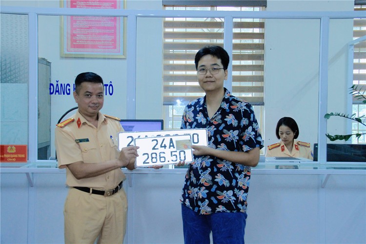 Ngày 12/8/2024, anh Trần Quốc Huy (HKTT tại phường Kim Tân, thành phố Lào Cai) đã thực hiện đăng ký thành công các bước như hướng dân của lực lượng Cảnh sát giao thông Công an tỉnh và được cấp biển số 24A-286.50. Theo quy định biển số và đăng ký xe tại nhà nhưng do nhu cầu cần thiết, sáng ngày 13/8/2024, anh Huy đã trực tiếp xuống trao đổi với lực lượng chức năng để nhận biển số kèm đăng ký tại cơ quan Công an. Đây là trường hợp đăng ký xe ô tô lần đầu qua dịch vụ công trực tuyến toàn trình tại tỉnh Lào Cai.