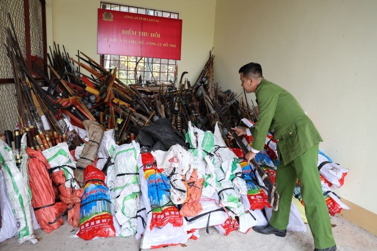 Kết quả, năm 2023, công an các đơn vị, địa phương trên toàn tỉnh Lào Cai đã tổ chức vận động thu hồi được 3.928 vũ khí, vật liệu nổ, công cụ hỗ trợ và pháo, vượt 409% chỉ tiêu Bộ Công an giao. Trong đó có 2.254 khẩu súng săn, 1.350 dao, kiếm, 324 công cụ hỗ trợ, lựu đạn, viên đạn, pháo hoa. Phát hiện bắt giữ 7 vụ, 11 đối tượng có hành vi vận chuyển, tàng trữ trái phép trên 900kg pháo các loại. Tiêu biểu là các địa bàn huyện Bảo Thắng, Bảo Yên, Mường Khương, thị xã Sa Pa, Văn Bàn...