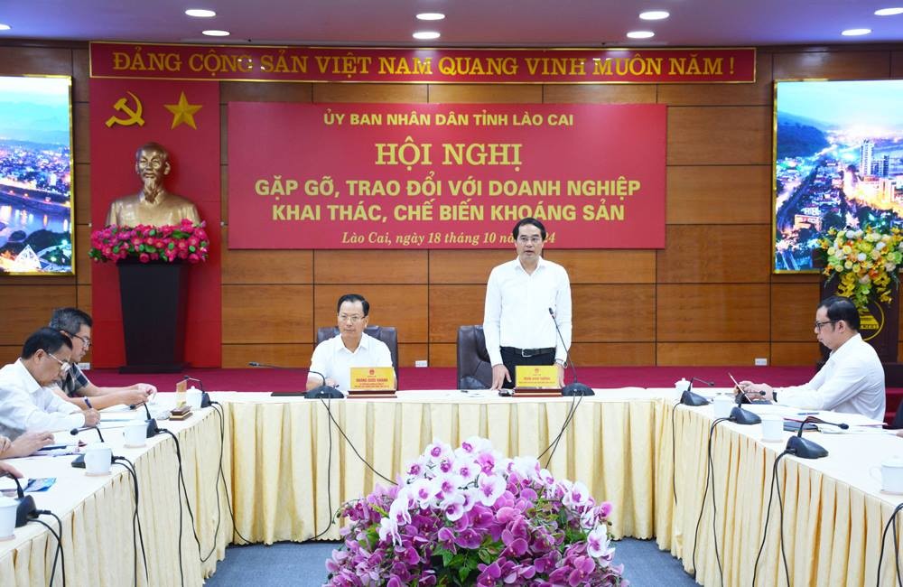 Theo Chủ tịch UBND tỉnh Lào Cai, tại hội nghị, ngoài việc tháo gỡ, giải quyết khó khăn, vướng mắc, chúng ta còn cần bàn tính đến việc đóng góp của các doanh nghiệp khoáng sản đối với công tác an sinh xã hội, sự phát triển kinh tế - xã hội của địa phương. Từ nay đến cuối năm 2024 còn hơn 2 tháng nữa và chỉ còn 1 năm là hết nhiệm kỳ 2020 - 2025, các cấp, các ngành tỉnh Lào Cai sẽ tiếp tục đồng hành với doanh nghiệp khai thác, chế biến khoáng sản và mong muốn các doanh nghiệp cũng sẽ đồng hành với địa phương trong chặng đường sắp tới để cùng phát triển, đạt được các mục tiêu kinh tế - xã hội đã đề ra.