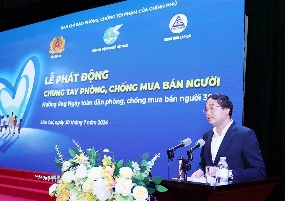 Sáng 30/7, tại Trung tâm Hội nghị tỉnh Lào Cai, Bộ Công an phối hợp với Trung ương Hội Liên hiệp Phụ nữ Việt Nam và UBND tỉnh Lào Cai tổ chức Lễ phát động “Chung tay phòng, chống mua bán người” hưởng ứng “Ngày thế giới phòng, chống mua bán người” và “Ngày toàn dân phòng, chống mua bán người 30/7” năm 2024 với chủ đề “Không trẻ em nào bị bỏ lại phía sau trong cuộc chiến phòng, chống mua bán người”.