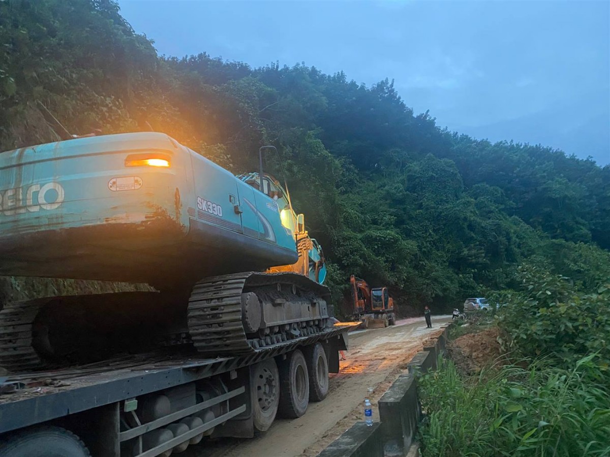 Các đơn vị khai thác khoáng sản đang tạm dừng hoạt động, di chuyển máy móc thiết bị đến nơi tập kết an toàn (Ảnh: CTTĐTLC) |