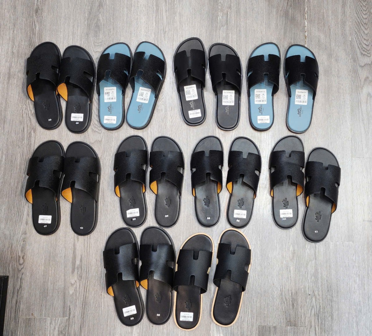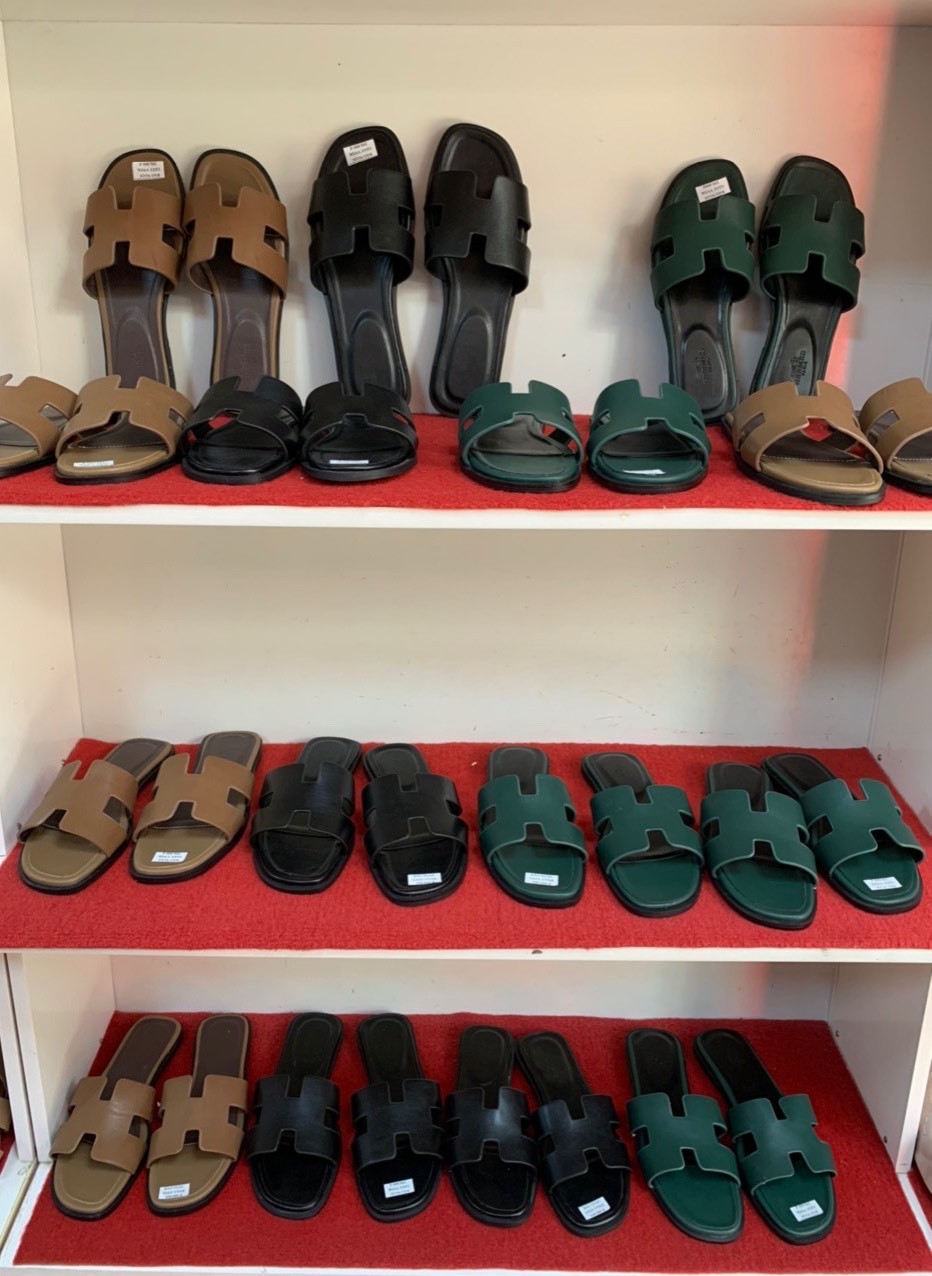 Tang vật vi phạm là dép đế cứng giả nhãn hiệu Hermes và Adidas. Ảnh: Cục QLTT tỉnh Lào Cai |