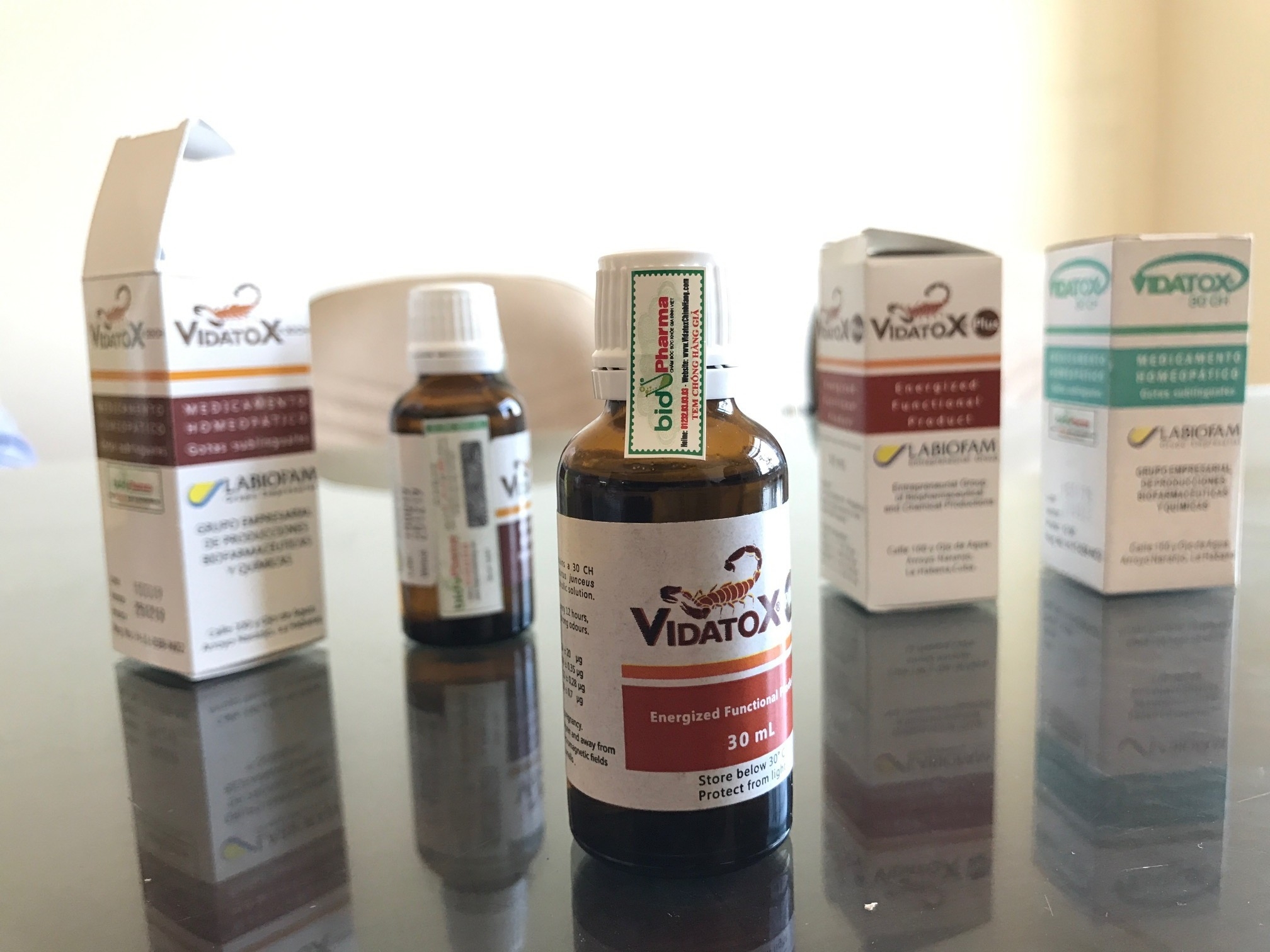 Vidatox, được chiết xuất từ nọc bò cạp xanh do Tập đoàn Dược phẩm Labiofam tại Cuba sản xuất. Đây là công trình nghiên cứu của nhà khoa học Cuba - Misael Bordier với nọc độc của bọ cạp xanh của Cuba, có khả năng ức chế và ngăn ngừa sự phát triển của tế bào ung thư. Sản phẩm này hiện được lưu hành tại 60 nước trên thế giới và có hàng nghìn người Việt Nam đã sử dụng cho những kết quả rất khả quan.