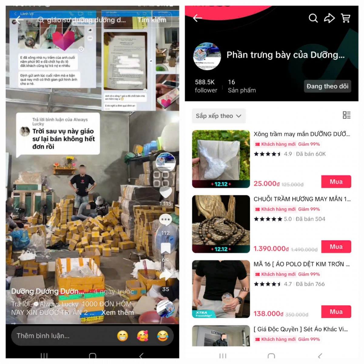 Đây là những câu hỏi rất cần làm rõ bởi dù chỉ đăng ký hộ kinh doanh cá nhân, nhưng doanh thu từ hoạt động bán hàng của ông Mai Văn Dưỡng lại rất lớn. Cụ thể, theo thống kê của Tiktok, thời gian qua, kênh Dưỡng Dướng Dường Phong Thuỷ đã bán ra thị trường hơn 62.000 sản phẩm gói xông nhà, với giá niêm yết 125.000 đồng/gói, doanh thu ước tính riêng sản phẩm này khoảng 8 tỷ đồng.