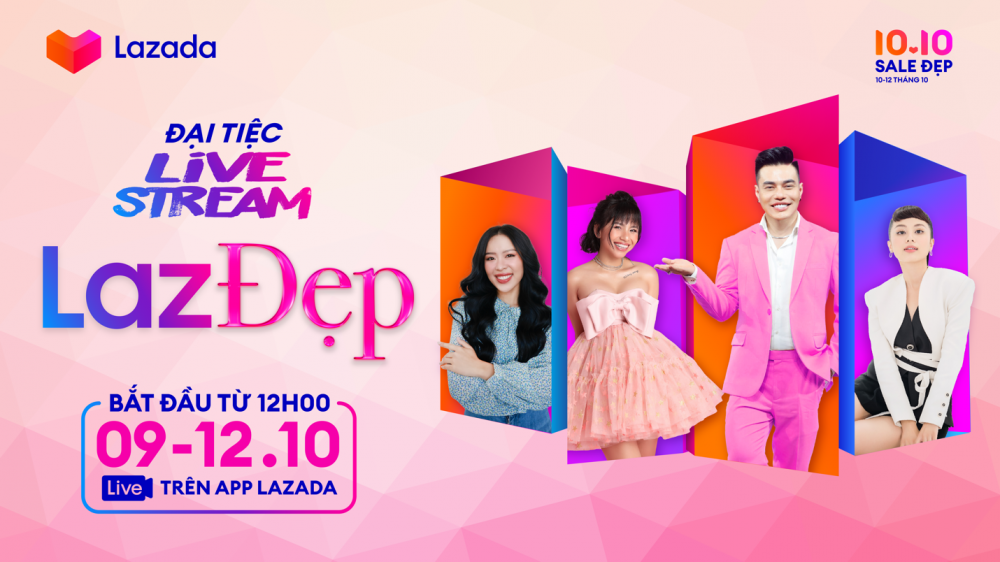 Nổi bật trong số đó chính là đại tiệc sắc đẹp độc nhất chỉ có trong Lễ hội mua sắm 10.10 mang tên “Laz đẹp”, diễn ra trong 4 ngày liên tục từ 9/10 đến 12/10 vào lúc 12h - 22h trên LazLive. Từng phòng livestream của “Laz Đẹp” sẽ có sự tham gia của những KOL đình đám như Lê Dương Bảo Lâm, Ngọc Phước, An Phương cùng loạt KOC chuyên về thời trang và làm đẹp như Cổ Ngân, Call Me Duy, Pu mét 7, Chúa tể Review … nhằm chia sẻ những bí quyết hữu ích từ làm đẹp cho đến mix & match, giúp nàng sành điệu càng thêm đẹp và rạng rỡ hơn mỗi ngày. Chương trình còn mang đến người xem những sản phẩm hot với giá hời chạm đáy và những ưu đãi đặc biệt chỉ có trong livestream như voucher lên đến 1.000.000 đồng với tổng giá trị voucher lên đến 1 tỷ đồng.