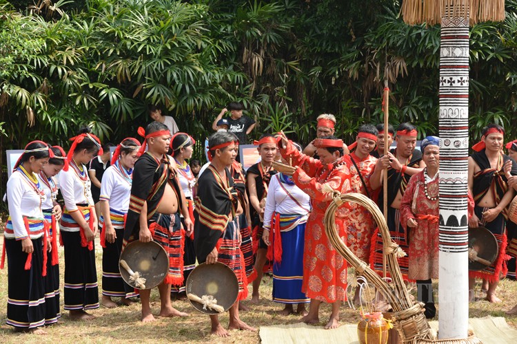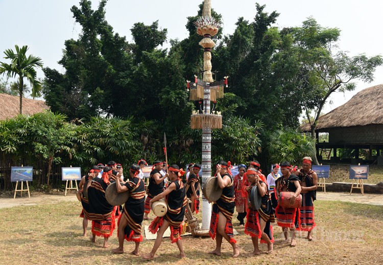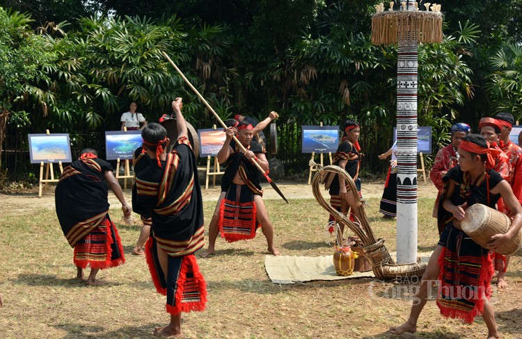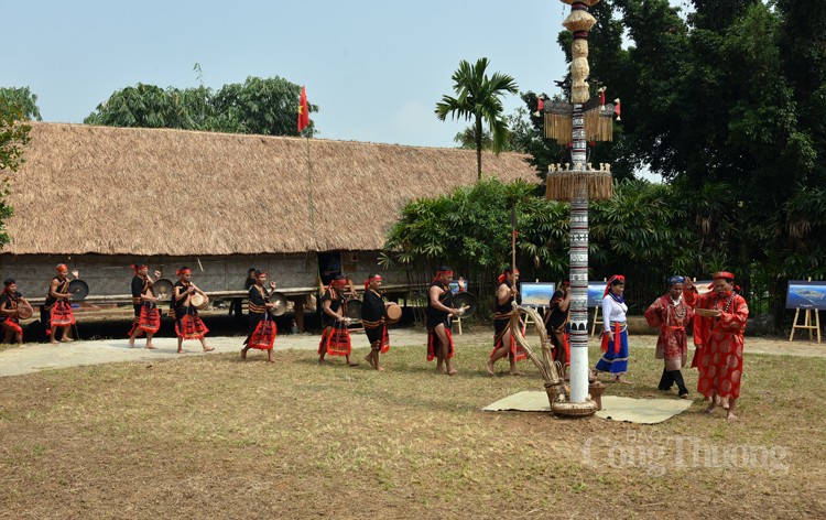 | Nhảy múa xung quanh cây nêu với cồng chiêng và những điệu múa truyền thống |