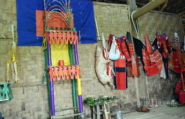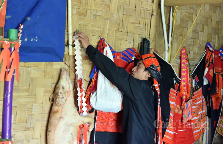| Chuẩn bị lễ vật trong lễ cúng cấp sắc của dân tộc Pà Thẻn |