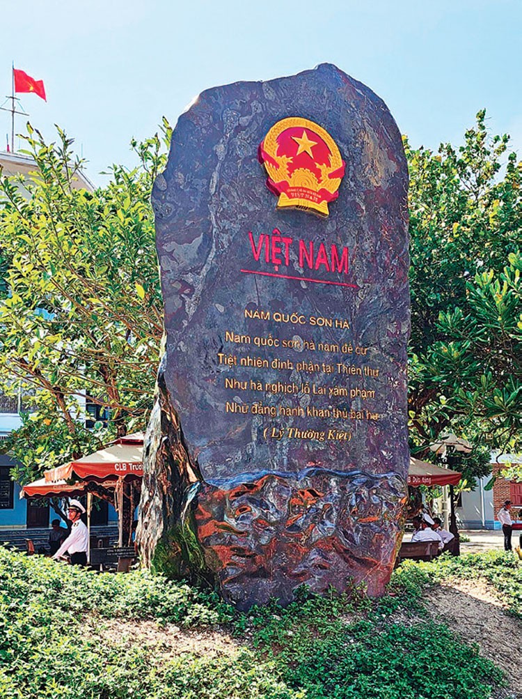| Phiến đá chủ quyền có khắc bài thơ "Nam quốc sơn hà" trên đảo Trường Sa |