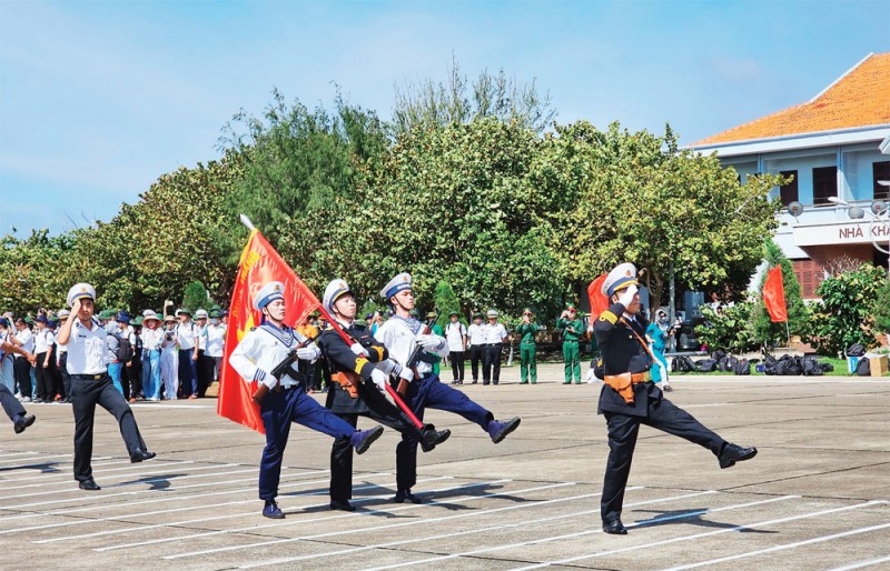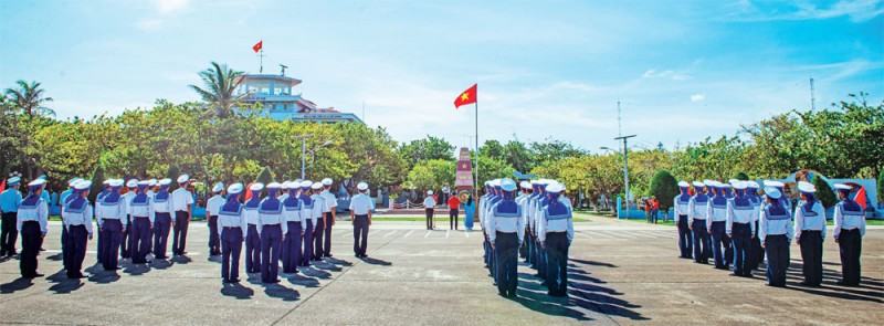 "Nghiêm! Chào cờ... Chào!". Sau tiếng hô dõng dạc, dưới lá cờ thiêng liêng của Tổ quốc đang tung bay đầy kiêu hãnh giữa nền trời xanh thẳm, từng lời bài hát Tiến quân ca vang lên hùng tráng, vang dội át tiếng sóng biển ngoài khơi xa: "Đoàn quân Việt Nam đi, chung lòng cứu quốc. Bước chân dồn vang trên đường gập ghềnh xa...". Với mỗi thành viên tham gia Lễ chào cờ tưởng chừng như từng lời bài hát đã thuộc nằm lòng từ tấm bé. Nhưng nay khi được hát vang những ca từ hào hùng ấy giữa quần đảo anh hùng trong trái tim mỗi người đều cảm thấy thổn thức tự hào, xúc động khó tả. Nó không thể gọi tên, đơn giản vì đó chỉ có thể là tình yêu Tổ quốc.