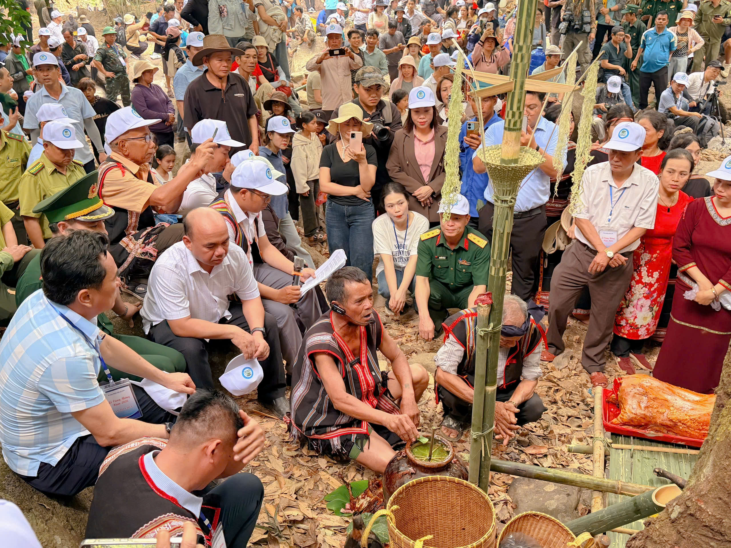 Trong không gian trầm mặc giữa núi rừng, tiếng khấn của già làng hòa cùng hương rượu cần, lễ vật dâng cúng… Tất cả tạo nên một nghi thức trang nghiêm, gửi gắm lòng biết ơn đến rừng, nguồn sống, nguồn che chở của buôn làng.