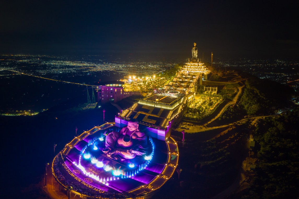 Tối 8/6, tại khu vực đỉnh núi, Giáo hội Phật giáo Việt Nam tỉnh Tây Ninh và Khu du lịch Sun World Ba Den Mountain đã tổ chức Đại Lễ dâng đăng tại quảng trường dưới chân tượng Phật Bà Tây Bổ Đà Sơn, để kính mừng lễ vía.