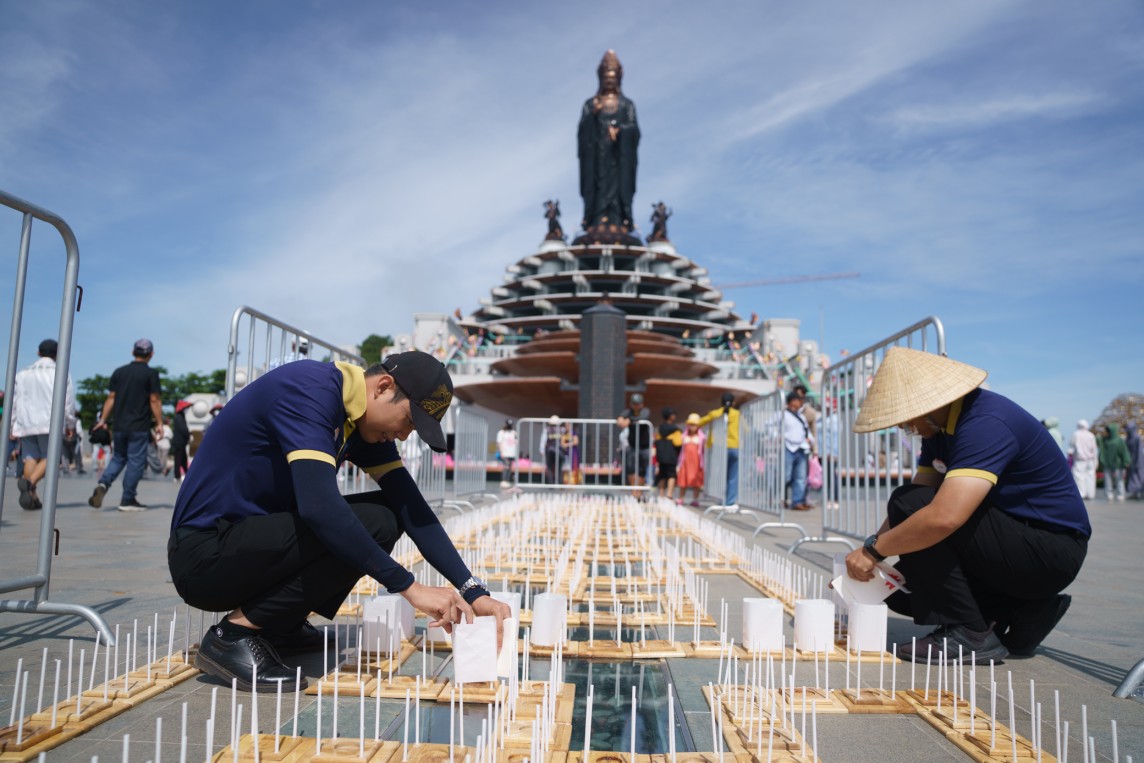 Tham gia vào Đại Lễ dâng đăng, các ngọn đăng được các Phật tử, du khách tự tay viết lời nguyện ước bình an, hạnh phúc dâng lên Linh Sơn Thánh Mẫu Bồ Tát đại diện của lòng từ bi, cứu độ chúng sinh, tất cả được thắp sáng bên các đĩa nước dưới chân tượng Phật Bà Tây Bổ Đà Sơn, tạo nên không gian huyền ảo chưa từng có cho đỉnh núi cao nhất Nam bộ.