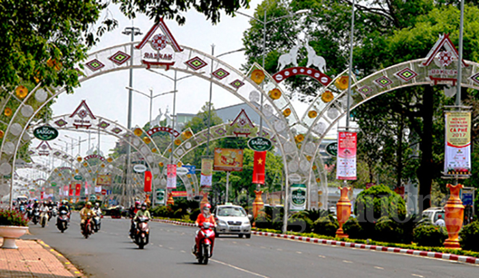 Đường hoa hoàn tất khâu trang trí sẵn sàng cho Lễ hội Cà phê Buôn Ma Thuột lần thứ 6 và Liên hoan Văn hóa Cồng chiêng Tây Nguyên 2017 |