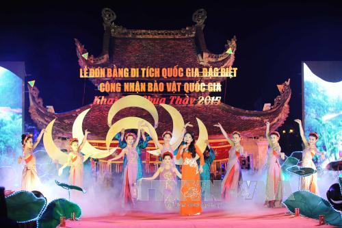 | Lễ đón bằng xếp hạng Di tích Quốc gia đặc biệt, công bố quyết định công nhận Bảo vật Quốc gia và khai hội chùa Thầy năm 2015. |