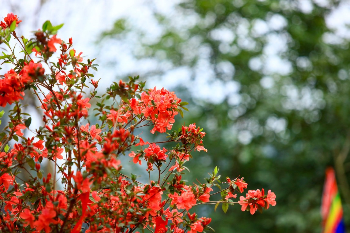 | Vào mùa Xuân, thị trấn Tam Đảo (Vĩnh Phúc) rực rỡ sắc hoa đỗ quyên (Ảnh Cao Lan) |