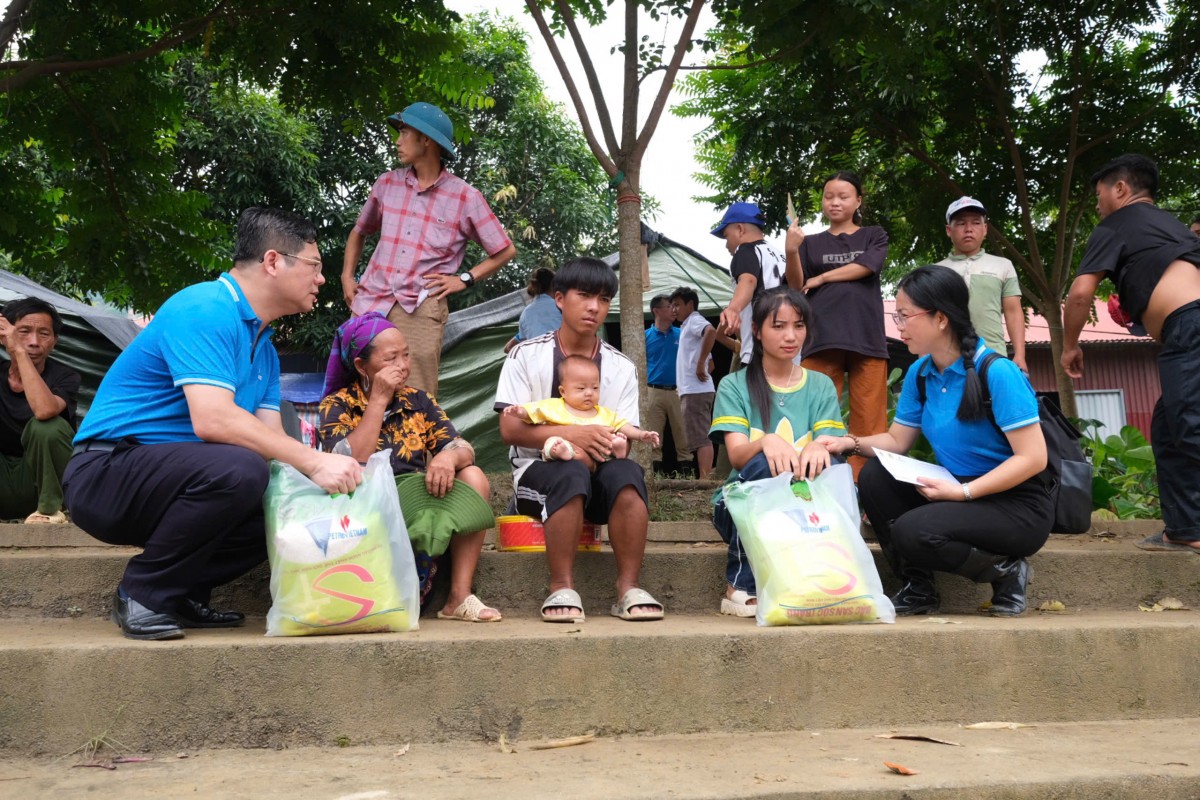 Cùng đồng cảm và sẻ chia với những khó khăn, vất vả mà người dân Kho Vàng nói riêng và đồng bào trên cả nước gặp phải trong lúc thiên tai, bão lũ, ngay sau khi khởi công tái thiết khu dân cư thôn Kho Vàng, đoàn công tác của Petrovietnam đã đến thăm, tặng quà các hộ dân đang tạm cư tại trụ sở UBND xã Cốc Lầu. Thể hiện tấm lòng, văn hóa nghĩa tình, sẻ chia, những người Dầu khí đã trao tận tay đồng bào những phần quà là máy lọc nước, đồ dùng thiết yếu, tiền mặt bằng chính nguồn kinh phí từ sự đóng góp các cán bộ, công nhân viên với tổng trị giá gần 300 triệu đồng.