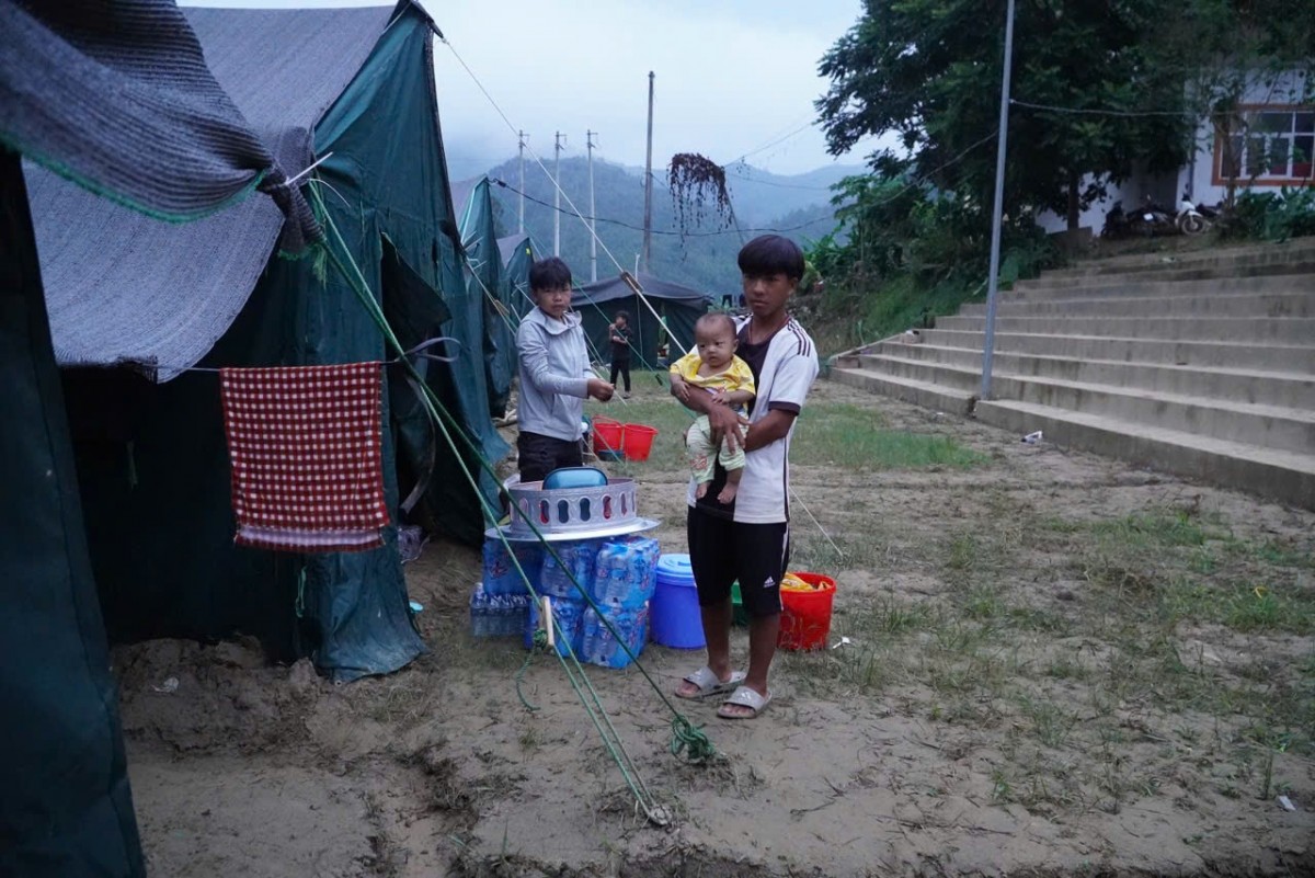Còn anh Giàng Seo Phố, 20 tuổi, bế đứa con mới 7 tháng tuổi chia sẻ, ở thôn cũ gia đình anh sinh sống bằng nghề làm nương, trồng quế, trồng sắn. Cái hôm mưa lụt, nước vào ngập hết nhà cửa, Phố vội vàng kêu vợ ôm được cái chiếu, ít quần áo rồi chạy theo trưởng thôn Chứ.