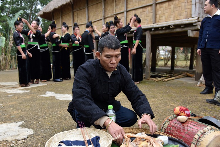 Thầy cúng Lò Văn Khâu, huyện Tuần Giáo, tỉnh Điện Biên cho biết: Lễ cúng chính trong lễ tạ ơn bao gồm hai nghi thức: Cúng lễ vật sống và cúng lễ vật chín. Lễ cúng vật sống bắt đầu với nghi thức gõ 3 hồi chiêng của thầy cúng, sau đó anh em trong dòng họ lần lượt vào gian thờ thực hiện nghi thức vẩy rượu mời tổ tiên.