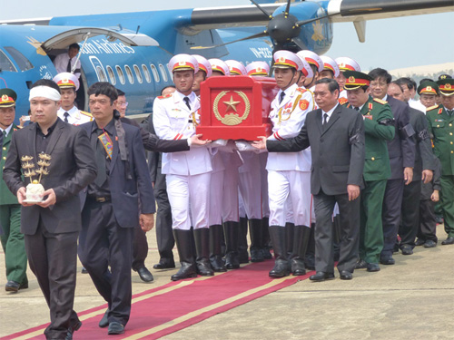 12g40 linh xa chở linh cửu Đại tướng rời khỏi cổng sân bay đã có hàng nghìn tiếng hô vang “Đại tướng Võ Nguyên Giáp muôn năm”; “Đại tướng Võ Nguyên Giáp bất tử”…