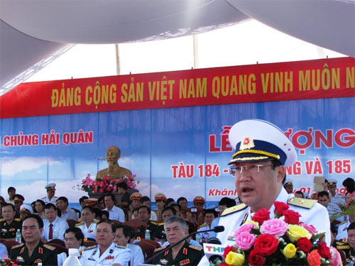 Tại Lễ thượng cờ, Chuẩn đô đốc Phạm Hoài Nam, Tư lệnh Quân chủng Hải quân đã công bố quyết định điều động và đưa vào biên chế Lữ đoàn 189 hai tàu ngầm mới 184 Hải Phòng và 185 Khánh Hòa; đồng thời trao quốc kỳ và cờ Hải quân Nhân dân Việt Nam cho 2 thuyền trưởng, giao nhiệm vụ cho 2 kíp tàu ngầm tiếp tục học tập nâng cao trình độ chuyên môn, làm chủ con tàu, sẵn sàng nhận và hoàn thành xuất sắc nhiệm vụ được giao, góp phần bảo vệ vững chắc chủ quyền, thềm lục địa thiêng liêng của Tổ quốc. Chuẩn đô đốc Phạm Hoài Nam khẳng định: “Chúng ta cần nhận thức sâu sắc việc xây dựng và phát triển các lực lượng bảo vệ biển nói chung, lực lượng tàu ngầm hiện đại của Hải quân Việt Nam nói riêng là việc làm bình thường của quốc gia có biển, không phải là chạy đua vũ trang, không phải để răn đe các nước trong khu vực mà để bảo vệ vững chắc chủ quyền biển đảo, thềm lục địa của Tổ quốc trong mọi tình huống, góp phần giữ vững môi trường hòa bình, ổn định trong khu vực và phát triển kinh tế - xã hội của đất nước”.