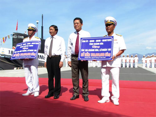 Nhân dịp này, lãnh đạo hai tỉnh Khánh Hòa và Hải Phòng đã trao tặng cán bộ, chiến sĩ tàu ngầm 184 Hải Phòng và 185 Khánh Hòa, mỗi tàu 1 tỷ đồng.