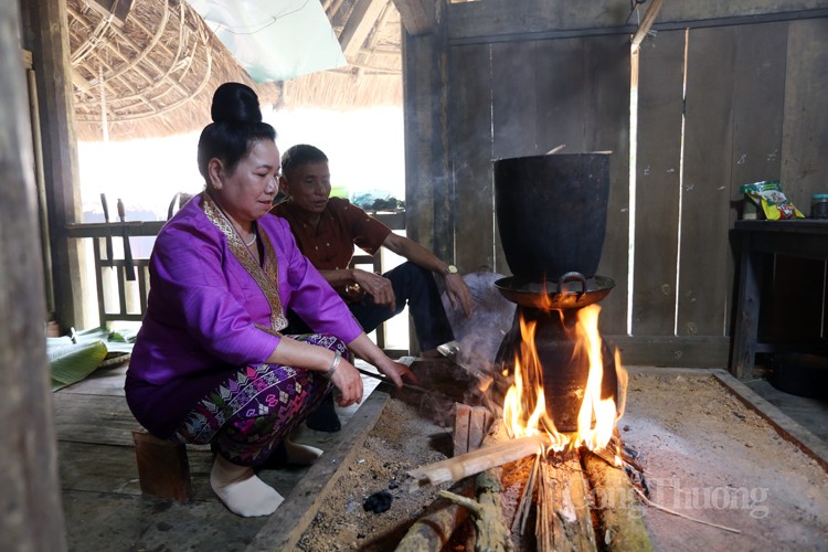 | Việc làm đầu tiên khi vào nhà mới đồng bào sẽ mang cái chỗ đồ xôi đặt lên bếp lửa và đồ xôi |