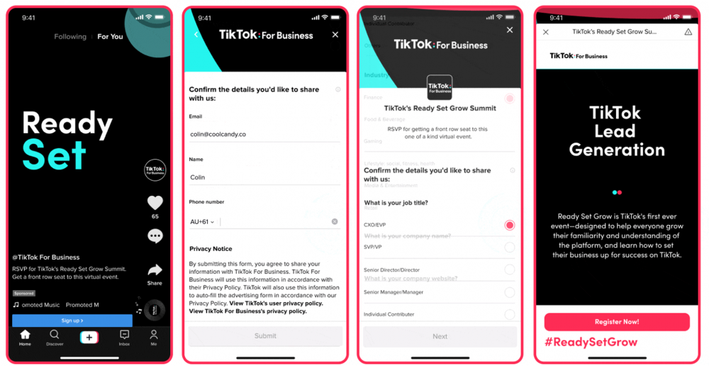 Với Lead Generation, người dùng có thể dễ dàng điền và cung cấp các thông tin như tên, email, số điện thoại khi quan tâm tới sản phẩm hoặc dịch vụ được quảng cáo trên nền tảng TikTok. Những thông tin cơ bản của người dùng có sẵn trên TikTok cũng có thể tự động được điền vào bảng để tối ưu hoá trải nghiệm giữa người dùng và doanh nghiệp.