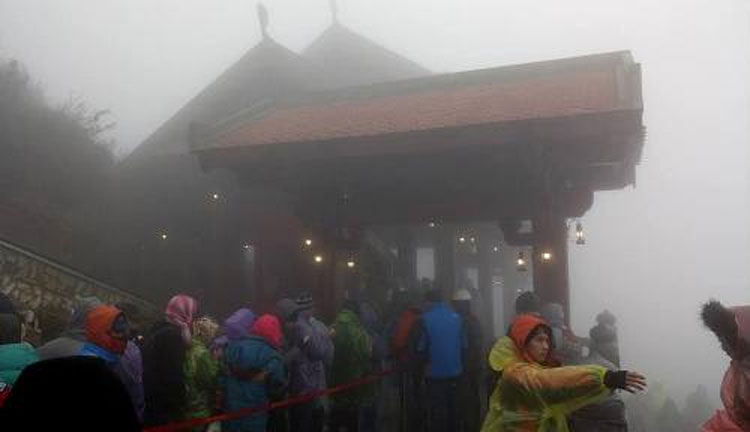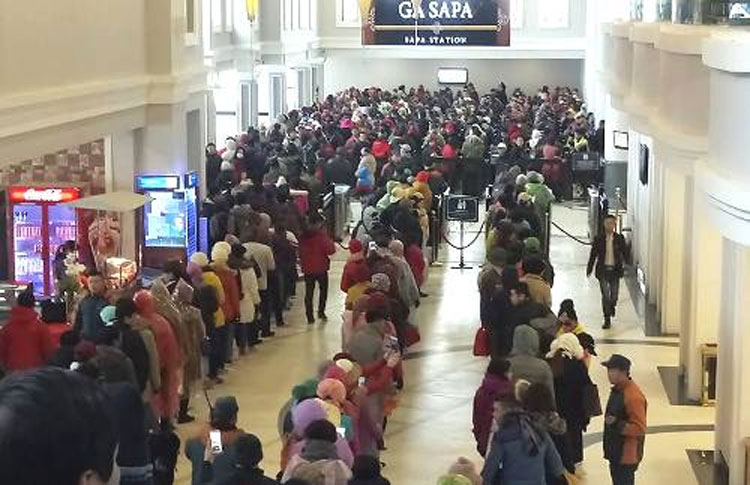 | Mặc dầu nhiệt độ ở Sa Pa xuống thấp khoảng 2°Csong rất đông du khách vẫn xếp hàng chờ đến lượt đi cáp treo |