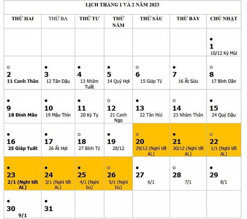 | Lịch nghỉ Tết Nguyên đán 2023 kéo dài 07 ngày |