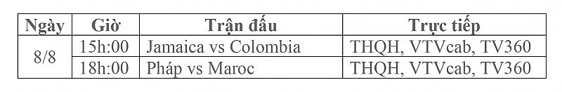 Ngày 8/8, sẽ diễn ra hai trận cầu tâm điểm cuối cùng tại vòng 1/8 World Cup nữ 2023: Jamaica chạm trán Colombia, Pháp đối dầu Maroc.