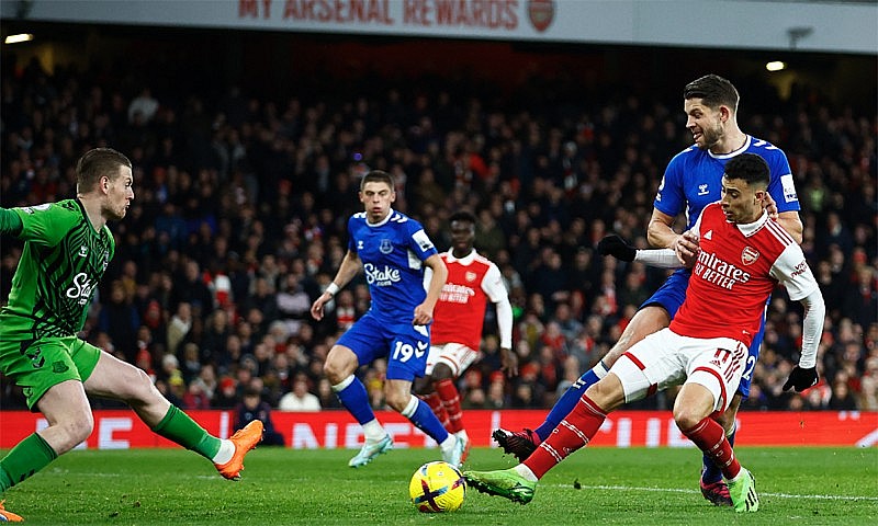 Arsenal rất quyết tâm giành chiến thắng trước Everton để bám đuổi Liverpool (Ảnh: Reuters) |