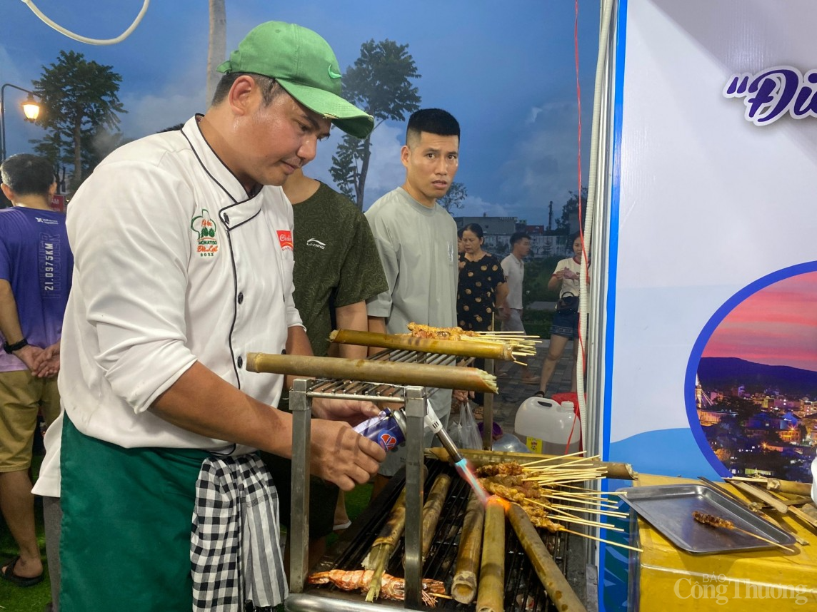 Các món ăn đặc trưng của miền núi như cơm lam, thịt nướng được làm trực tiếp trong gian hàng để phục vụ người tiêu dùng. (Ảnh: HK) |