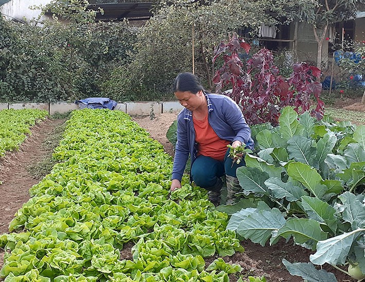 Gia đình chị Hoàng Thị Lực, thị trấn Ðiện Biên Ðông (huyện Ðiện Biên Ðông) trồng rau sử dụng phân bón hữu cơ.