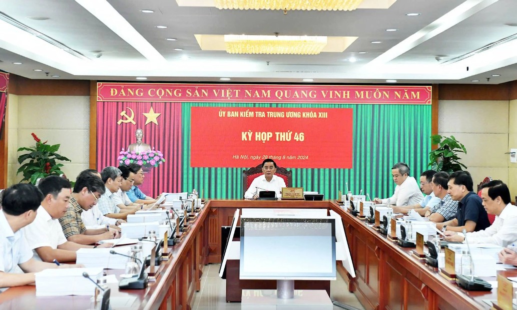 Trong các ngày 28 và 29/8/2024, tại Hà Nội, Ủy ban Kiểm tra Trung ương đã họp Kỳ thứ 46. Ủy viên Bộ Chính trị, Bí thư Trung ương Đảng, Chủ nhiệm Ủy ban Kiểm tra Trung ương Trần Cẩm Tú chủ trì kỳ họp.