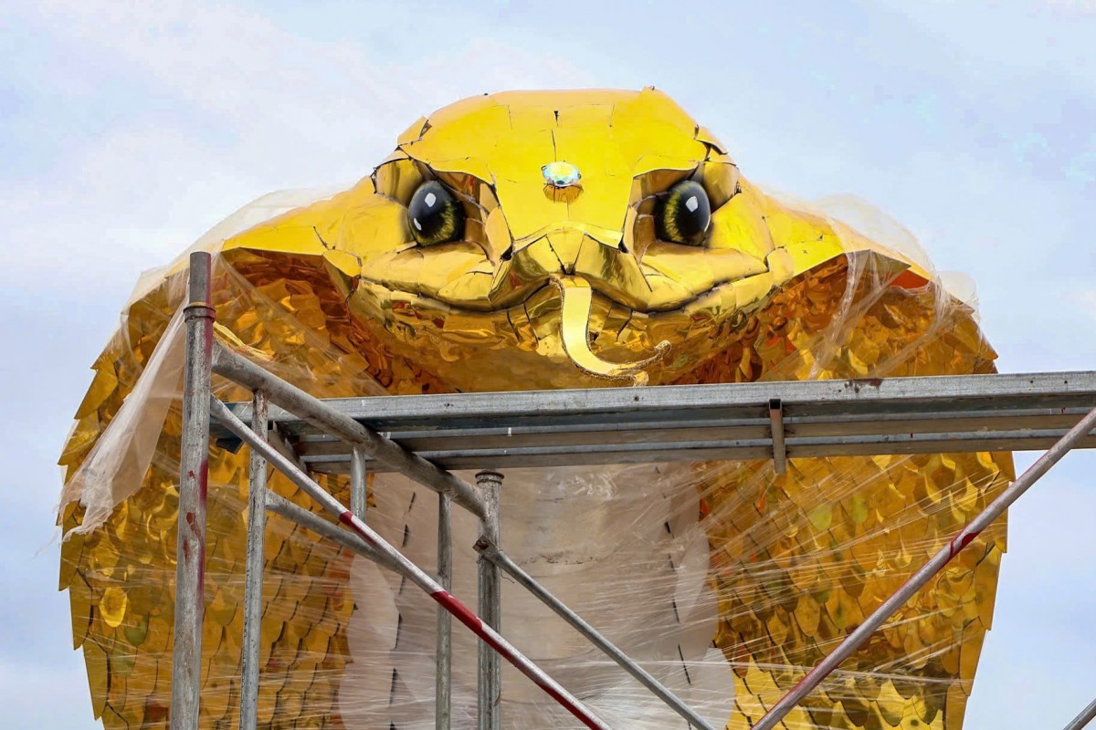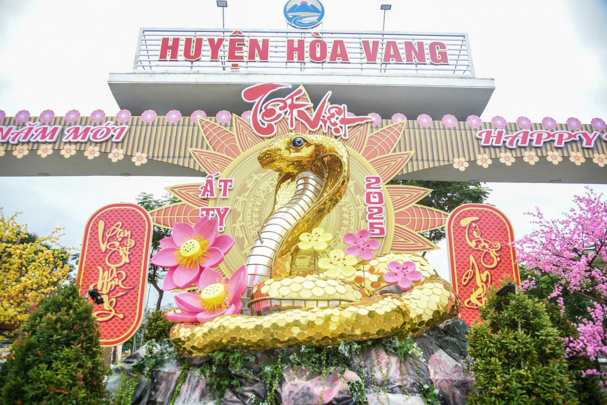 | Tại huyện Hòa Vang của thành phố Đà Nẵng cũng xuất hiện linh vật rắn màu vàng và nhận được nhiều khen ngợi về sự tinh tế của nghệ nhân. Ảnh: Khải Hoàng |