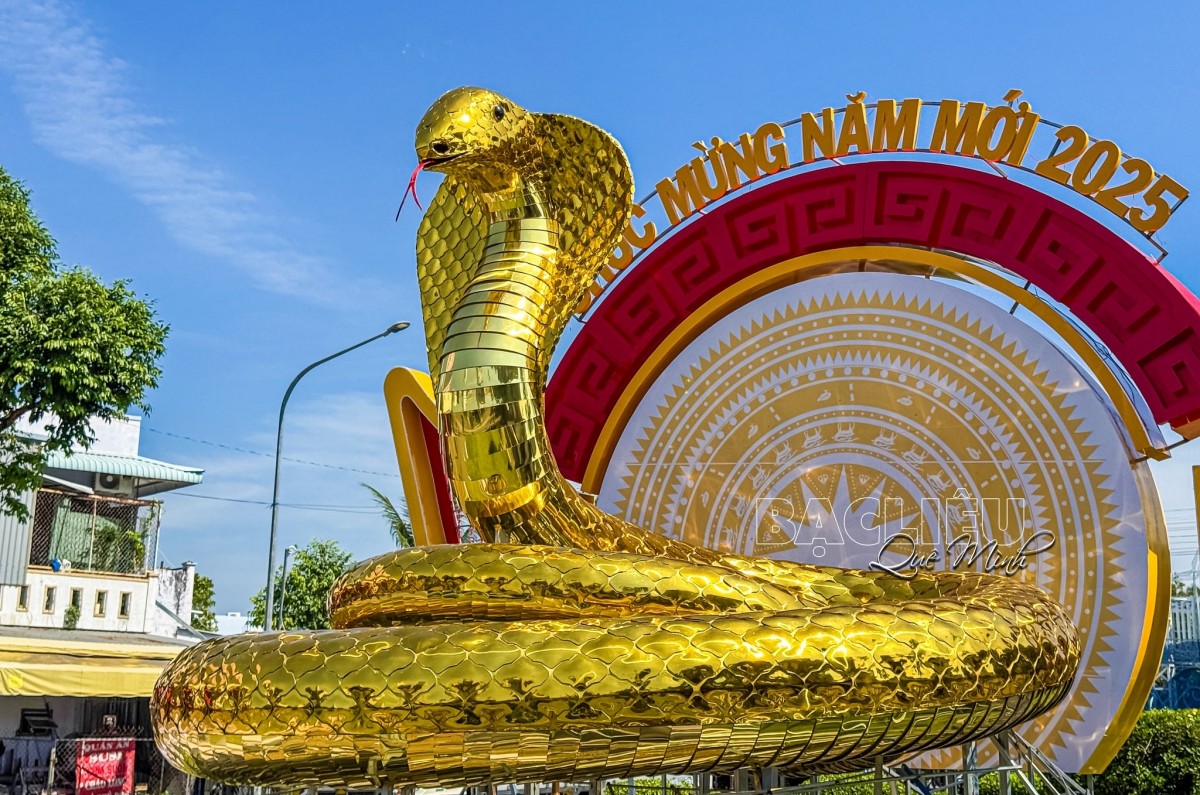 | Linh vật rắn ở Bạc Liêu xuất hiện đã khiến nhiều người trầm trồ và gây bão cộng đồng mạng. Ảnh: Bạc Liêu quê mình |