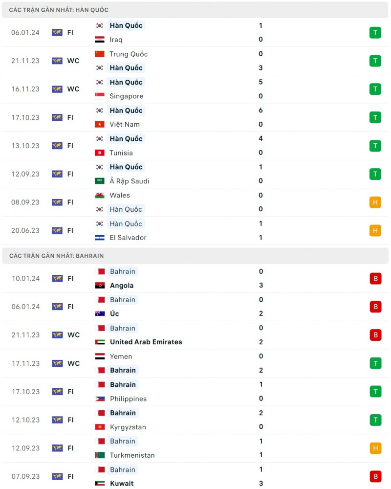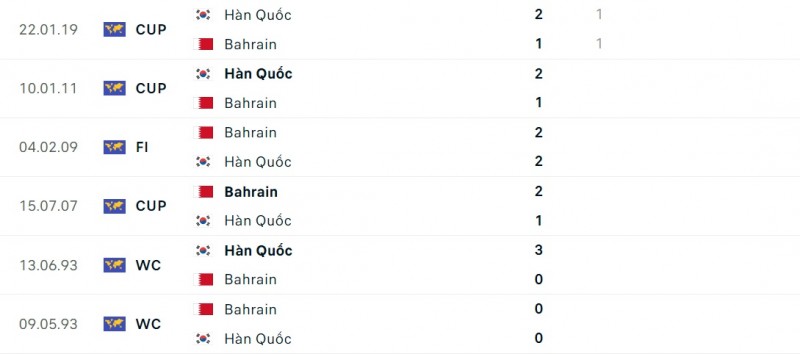 - Hàn Quốc thắng 2, hòa 3, thua 1 trước Bahrain ở 6 cuộc đụng độ gần nhất.