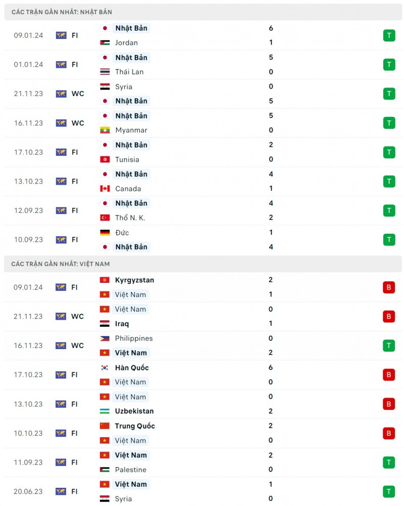 - 5 trận gần nhất, Nhật Bản ghi 23 bàn và thủng lưới 1 bàn.