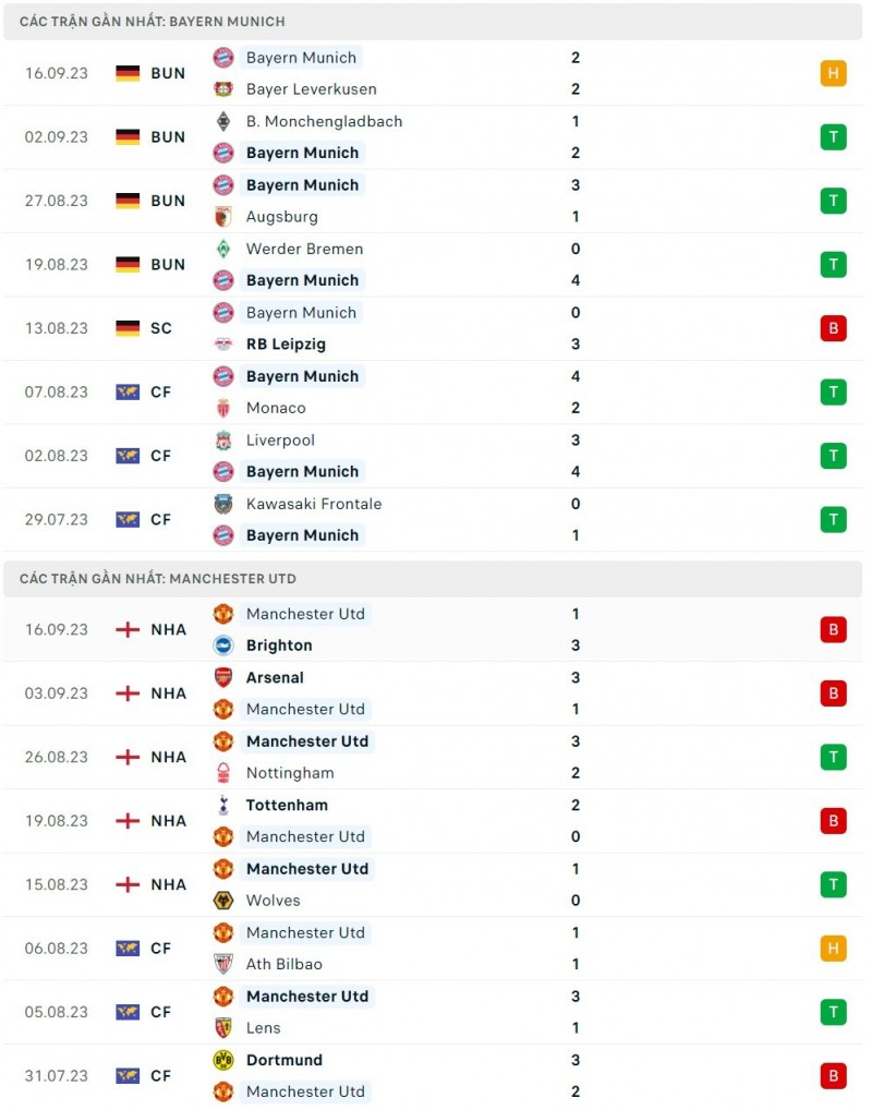- Bayern Munich chiếm ưu thế lớn trong những lần đối đầu gần đây với MU khi đã thắng 3, hòa 1 ở 5 lần gặp gần nhất.