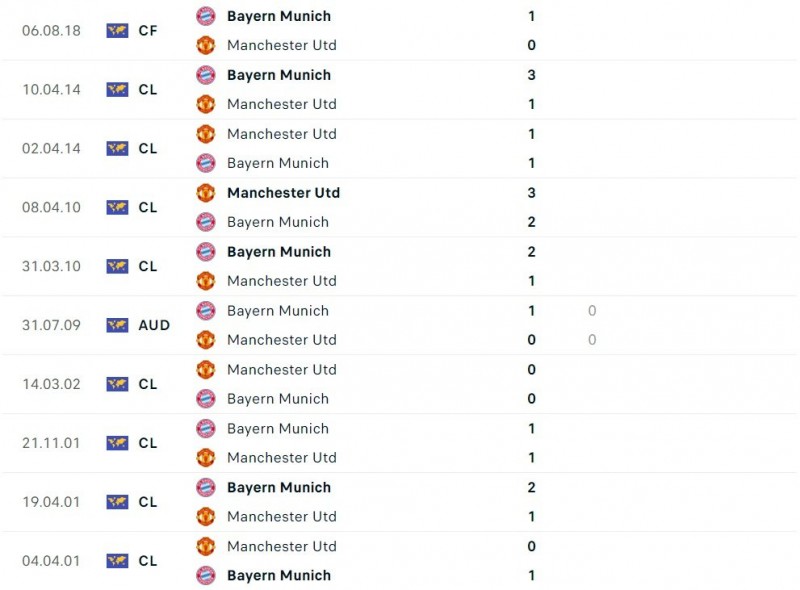Thành tích đối đầu giữa Bayern Munich và Man United