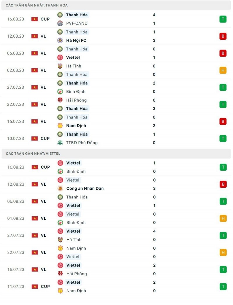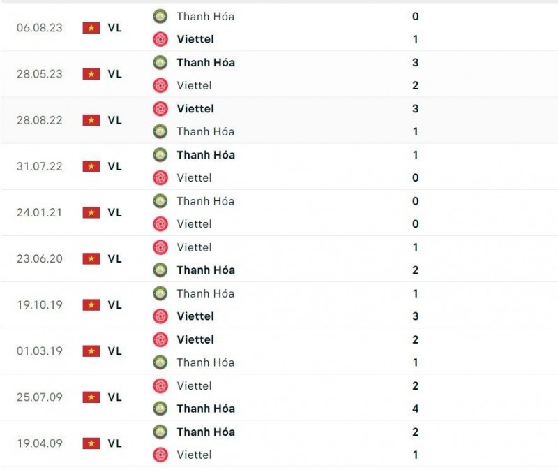 Thành tích đối đầu giữa Thanh Hoá và Viettel