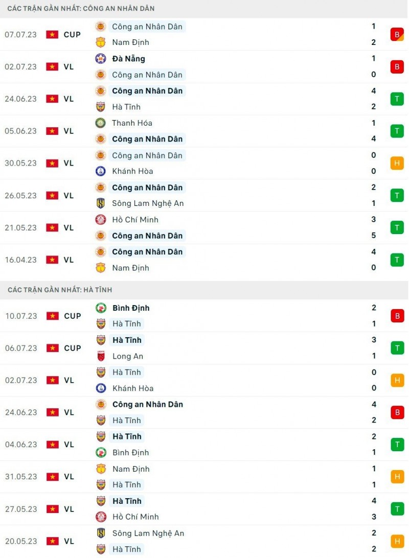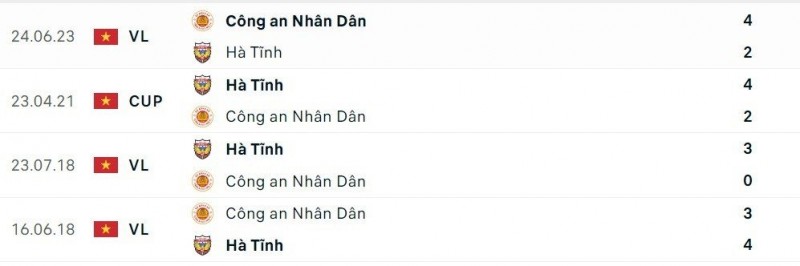 Thành tích đối đầu gia Công an Hà Ni và Hà Tĩnh