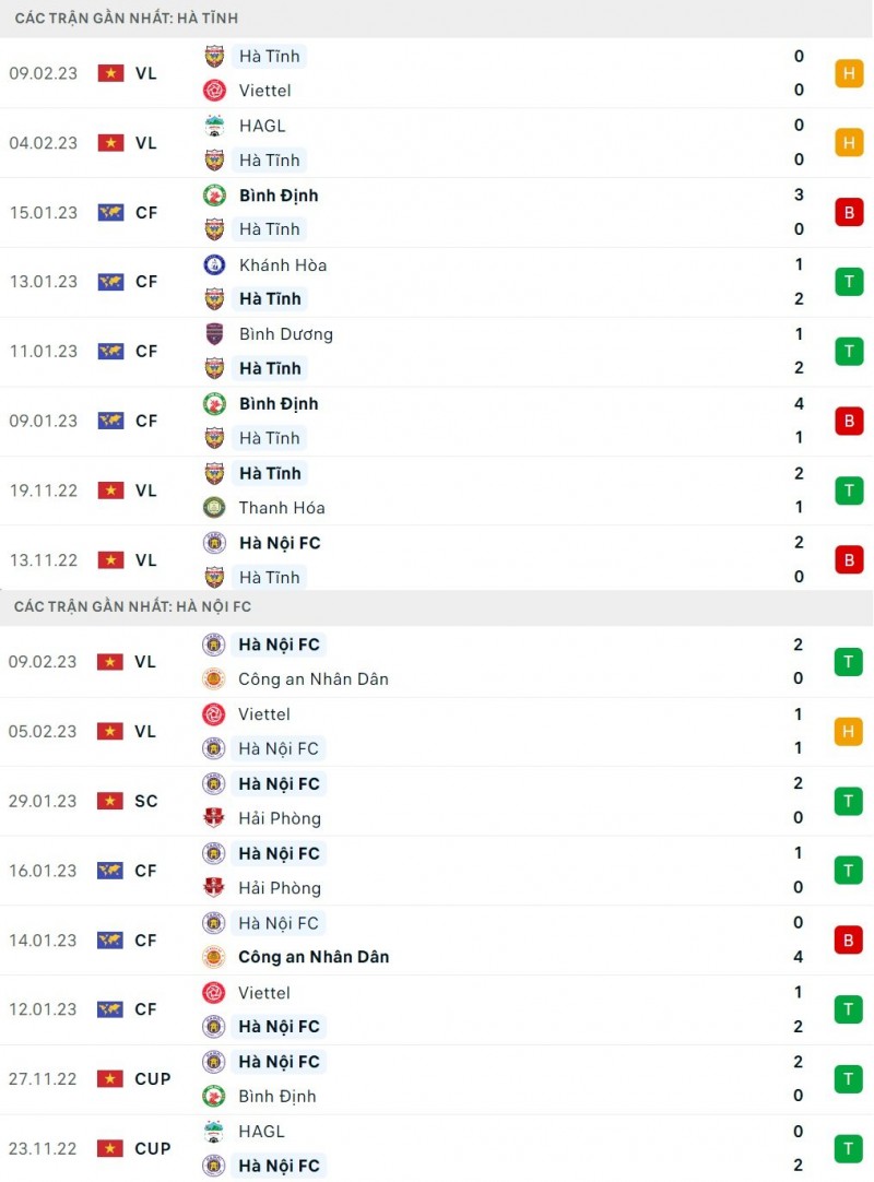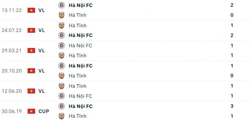Trong 5 lần đối đầu gần nhất, Hà Nội thắng 3, hòa 2 trước Hà Tĩnh. Mùa trước, Hà Nội thậm chí đã toàn thắng ở cả hai lượt trận khi ghi 4 bàn thắng vào lưới đối thủ và chỉ để lọt lưới 1 lần.